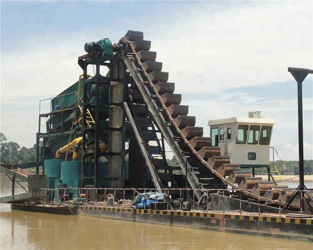 挖斗淘金船是本公司主打產(chǎn)品之一,本設(shè)備是鏈斗式的挖掘機械,可同時完成采掘、篩選、清洗、分級等工藝。,配備動力為柴油機或發(fā)電機組,能進行多沙石料的篩分、沙金洗選等工作。