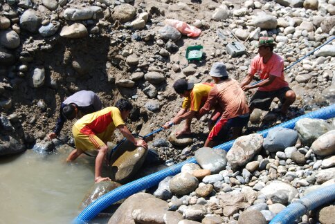 下面讓青州魯晟的李工給大家簡(jiǎn)單的說(shuō)一下幾種比較常見(jiàn)的沙金開(kāi)采設(shè)備它們的回收率到底如何。 沙金固定溜槽這是常見(jiàn)的一種,也是要淘汰的一種。現(xiàn)在在一些比較落后的地區(qū)還是有它的身影的。這種溜槽單從字面意思解讀固定溜槽就是一種不會(huì)動(dòng)的,這種在回收金的過(guò)程中是比較容易板結(jié)的,沙層一板結(jié),黃金沒(méi)有了下降的空間。回收率自然不會(huì)高,這種回收率不會(huì)超過(guò)60%。還得看清毯的次數(shù)。