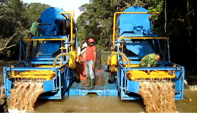 本淘金船具有投資成本合理、回收率高、能耗少、操作簡單、移動方便簡單、等特點,是河道沙金開采的設(shè)備。
