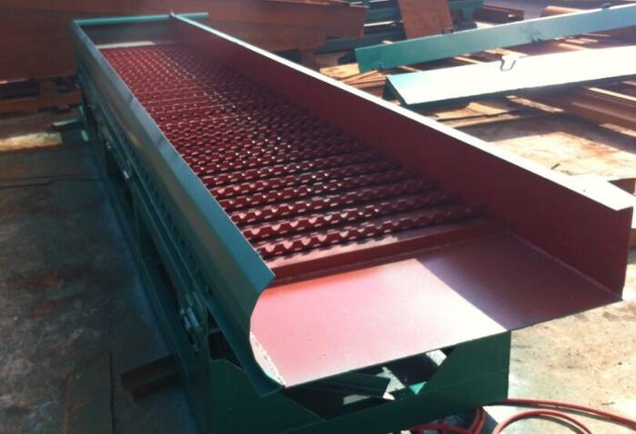 我公司鼓動溜槽現有兩種產品,一種為間歇型排礦鼓動溜槽,一種為自動排礦鼓動溜槽。自動排礦鼓動溜槽為我新型產品,為第五代鼓動溜槽。結合國內外鼓動溜槽選金經驗,制造出的新一代的選金設備。設備自動排礦,將所有重金屬收集到精料倉內,自動排出,不停機。經過選礦測試單體金回收率高達95%。甘肅一處含泥量較高的沙金礦單體金回收率97%。