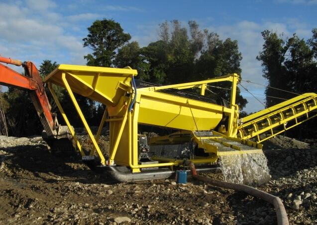 設備采用柴油機或發電機組帶動,可根據礦區實際情況定制。 如礦區含泥量較高,可在攪拌分離篩前加裝脫泥筒。 攪拌分離篩篩網可采用鋼筋編制或鐵板沖孔型,單層或雙層,根據礦料決定。 可根據礦料中含金形態、含金量來決定采用固定溜槽、鼓動溜槽、蠕動溜槽、離心機等。