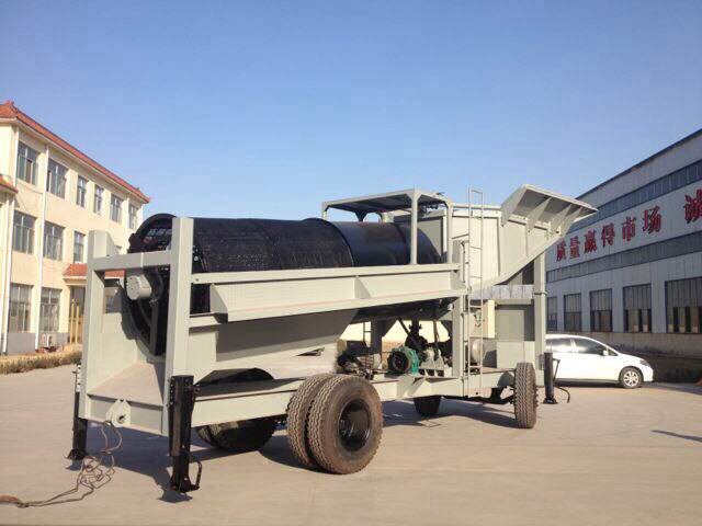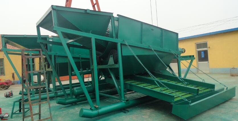 料斗不僅有全自動洗礦的功能,礦料進入篩分系統還特別的迅速,不需要給料機,料斗內部還有攪拌系統,對礦料進行攪拌,尤其是含泥量高的沙金礦,效果非常好。然后礦料均勻的進入篩分系統。篩分系統是有動力的,有滾筒篩和振動篩兩種,滾筒篩里面帶有鉸刀,分離的時候回進行攪拌,可以將泥巴打碎。振動篩適用于含石頭多的沙金礦,這種振動篩篩分迅速,效果好。